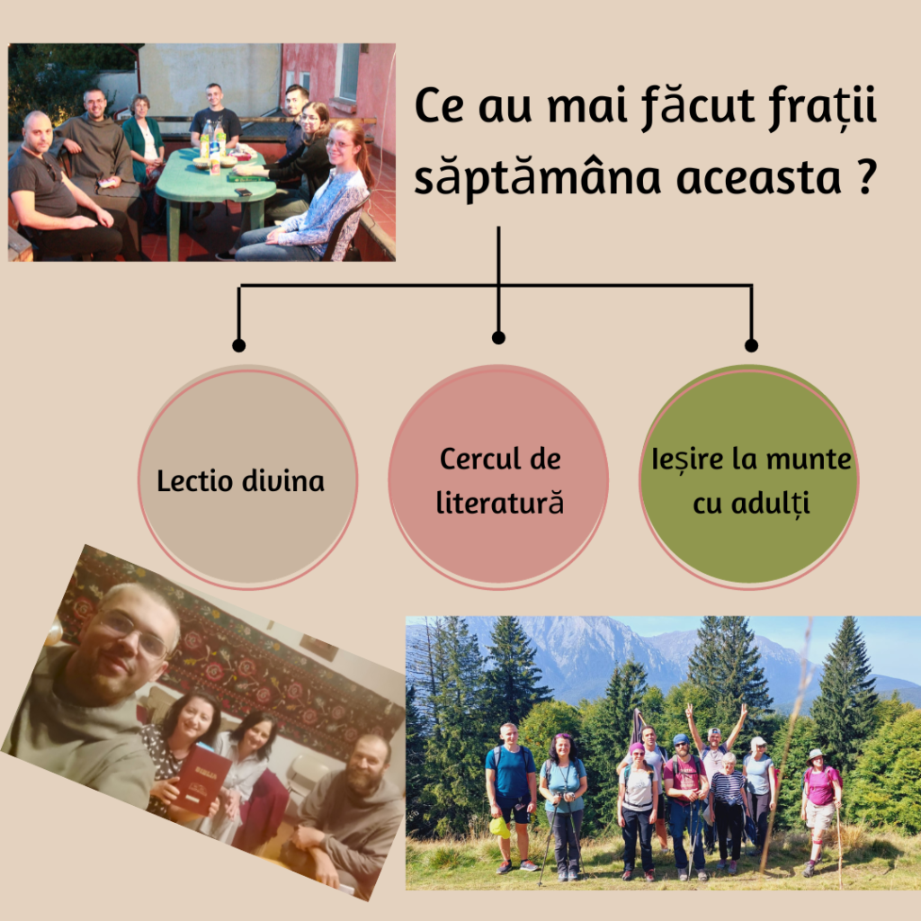 În cele din urmă, sâmbăta aceasta ne-am bucurat de prima ieșire la munte cu adulții. Prieteni ai mănăstirii, dar și persoane care au venit pentru prima dată, am portit după celebrarea Sfintel Liturghii în Biserica romano-catolică din Azuga, spre culmea Cărunta (1740 m) trecând pe lângă pârtia de ski Sorica. Drumeție cu nivel scăzut de difcultate în care soarele, veselia și frumusețea peisajelor au fost din belșug ! Deo gratias !